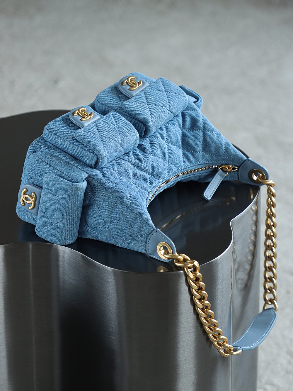 This season’s star piece—the 25C Hobo Denim Backpack. Its low-saturation light blue denim is incredibly eye-catching, effortlessly switching between sweet and edgy styles! Jennie’s signature style has gone viral. Whether paired with minimalist designs or delicate feminine looks, it instantly elevates your fashion quotient!